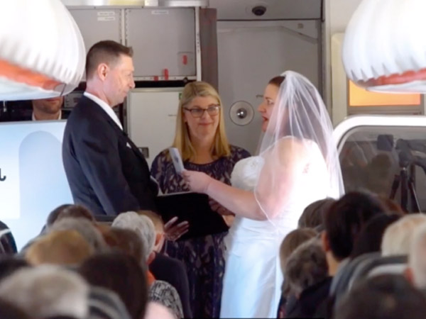 ఆస్ట్రేలియా, న్యూజిలాండ్ దేశాలకు చెందిన కాథీ మరియు డేవిడ్ తాము రెండు దేశాల మధ్య వివాహం చేసుకోవాలి అనుకుంటున్నామని ఎయిర్ లైన్స్ కు చెప్పారట. అది వారి కల అని, వారికి సహాయం చేయమని కోరారట. ప్రపంచంలోనే ఇలాంటి వివాహం మొట్టమొదటిది అని నమ్మిన ఎయిర్ లైన్స్ వారి కలను నిజం చేసేందుకు సహాయపడ్డారు.