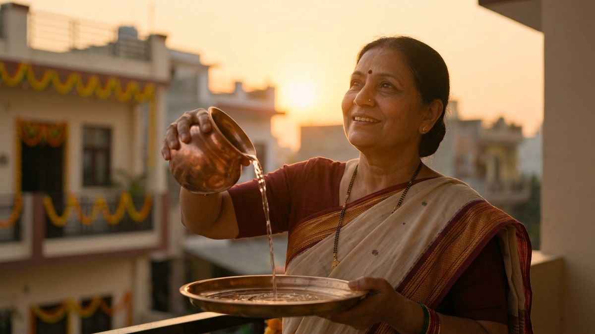 ఇంట్లోనే చాలా సులభంగా సూర్య పూజ చేసుకోవచ్చు. సూర్యోదయానికి ముందే నిద్రలేచి స్నానం చేయాలి. ఒక శుభ్రమైన రాగి పాత్రలో నీటిని తీసుకుని ఉదయించే సూర్యుడికి అర్ఘ్యం సమర్పించాలి. ఆ నీటిలో ఎర్రటి పూలు వేస్తే పూజకు మరింత నిండుదనం వస్తుంది.