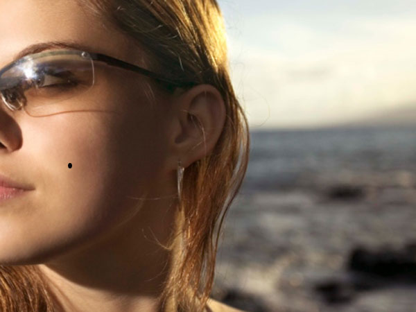 ఎడమ వక్షోజంపై బొట్టు ఆకారంలో